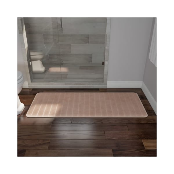 Add comfort and luxury to your bathroom, kitchen or laundry room with the Oversized Bathroom Rug by Hastings Home. The 1/2-inch thick memory foam provides plenty of soft, cushioned comfort as you step out of your tub or shower. The plush and super soft microfiber topper wicks away moisture and is machine washable for convenient and hassle-free cleaning. This extra-long runner is ideal for bathrooms with double vanities, claw foot tubs, or large walk-in showers and are also great for use in the kitchen or laundry room for comfortable cushioning under your feet. The backside of this rectangular shaped rug is nonskid, keeping it safely in place as you dry off. The attractive striped pattern is sure to bring a cozy style to any room of your home.