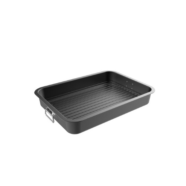 Cook up healthy and delicious dinners with the Heavy-Duty Roasting Pan by Hastings Home! With a removable flat wire rack insert conveniently included to drain off excess fat and grease and provide better air circulation for even cooking, your roast chicken, turkey, potatoes, or vegetables will turn out perfectly every time. This versatile pan can also be used without the rack to bake up lasagnas or casseroles. The nonstick coating on the inside and outside of the pan ensures a quick release so none of your food will get stuck to it. The convenient stainless-steel handles are securely riveted to the pan and fold down, making It'safe and easy to pull the hot roaster from the oven. Made of heavy-duty Carbon Steel, this durable pan will be a long-lasting piece of cookware for your kitchen.