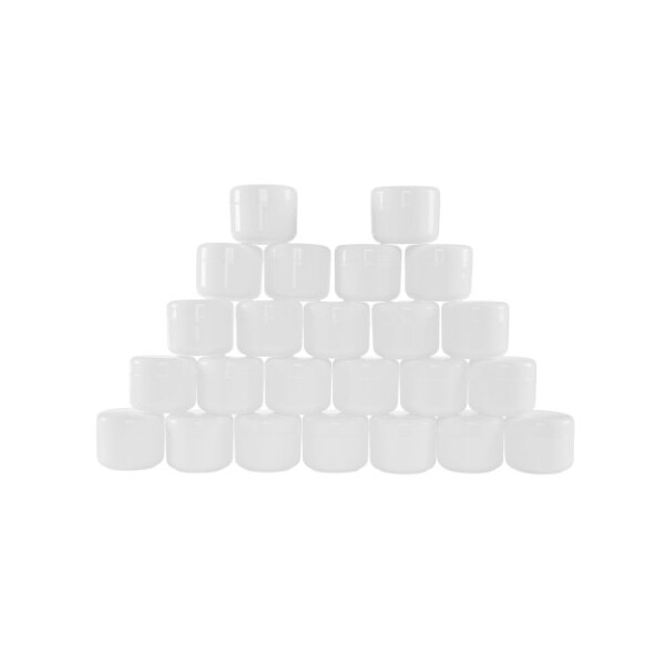 The Hastings Home 2-ounce plastic jars are the perfect storage containers for travel, home and bathroom organization and are ideal for holding a variety of items. Made from durable PET plastic, the set of white jars come with smooth lids with an outer screw off lid and inner protective lid to safely contain and protect whatever you need to store!