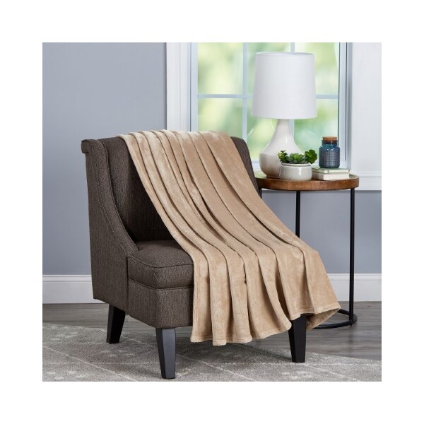 Velvet Throw - Oversized Microfiber Velvet Solid Polyester Throw Blanket - Breathable (Desert Tan)