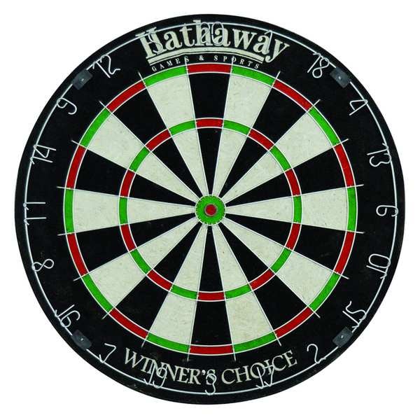 Dartboard, Product Type Dartboard, Scoring System Manual, Board Color Black, Green, Red, White, Board Material Sisal, Cabinet Color Not Applicable, Open Height 18 in, Open Width 18 in, Open Depth 1 1/2 in, Cabinet Material Not Applicable, Number of Darts 6, Mounting Hardware Included (2) Small Mounting Bracket Bolts, (3) Bumper Nails, (3) Rubber Bumpers, Mounting Bracket, Mounting Screw, Closed Depth Not Applicable, Closed Height Not Applicable, Closed Width Not Applicable, Assembly Unassembled