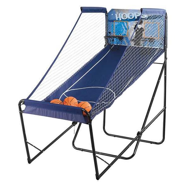 Electronic Basketball Game, Product Type Electronic Basketball Game, Frame Material Heavy Gauge Steel, Scoring System Electronic, Color Blue, Overall Length 81 in, Overall Width 41 in, Overall Height 81 in, Includes Sound System Yes, Includes Timer Yes, Number of Projectiles 6, Number of Targets 2, Target Diameter 12 in, Adjustable Sound Mute/Unmute, Includes (2) Basketball Nets, (6) 7 in Basketballs, AC/DC Power Supply, Pump with Needle, Indoor/Outdoor Indoor, Assembly Unassembled