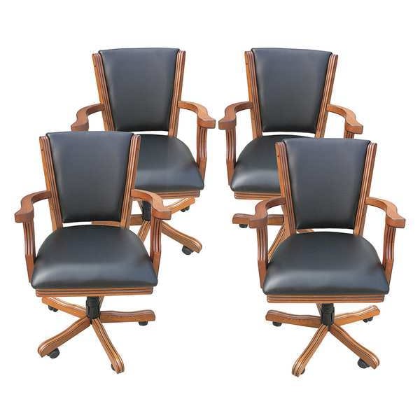 Poker Chair, Product Type Poker Chair, Color Honey Oak, Overall Height 34 1/2 in, Seat Material Synthetic Leather, Overall Width 23 1/2 in, Overall Depth 24 in, Finish Oak, Back Height 35 in, Back Width 19 in, Seat Height 18 1/4 in, Seat Width 19 in, Seat Depth 15 in, Caster Type 5-Star Base, Weight Capacity 250 lb, Assembly Unassembled, Package Quantity 4