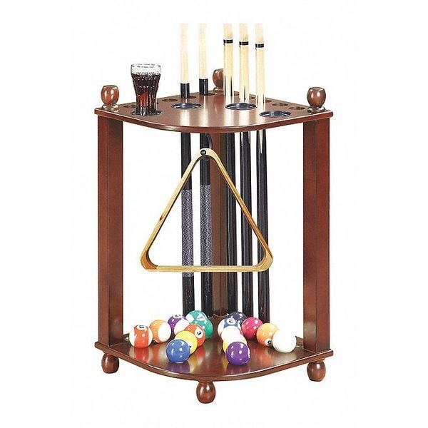 Cue Rack, Color Walnut, Compatible Cue Diameter - Maximum 2 in, Compatible Cue Diameter - Minimum 1/2 in, Compatible Cue Length - Maximum 70 in, Compatible Cue Length - Minimum 32 in, Includes Mounting Hardware No Mounting Hardware, Material Medium Density Fiberboard, Poplar Wood, Veneer, Number of Cue Slots 10, Overall Height 28 in, Overall Width 16 in, Product Type Cue Rack, Assembly Unassembled, Features Drink Coasters, Mountable Freestanding, Number of Cupholders 4, Overall Depth 16 in