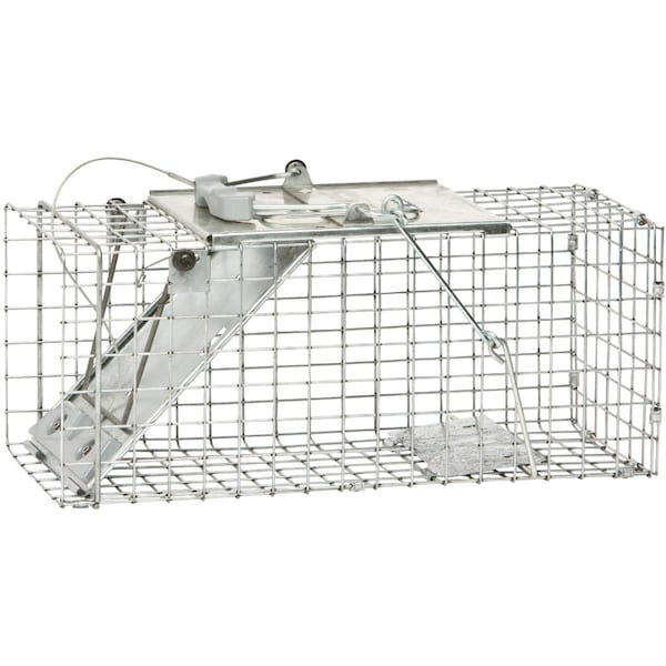 Set and release mechanism located on top of trap limits interaction with animal. Constructed of galvanized steel 1-piece 12-gauge wire mesh with a plastic carrying handle. Animal-safe design: rolled metal edges and snug fitting doors eliminate sharp surfaces and gaps that could harm the animal. 1 spring-loaded door. Fully assembled and ready-to-use. Ideal for trapping rabbits skunks squirrels and weasels.