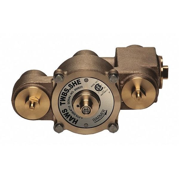 Emergency Mixing Valve, Accessory Type Thermostatic Mixing Valve, Color Yellow, Compatible with Brand Haws, Depth 11 in, Height 9 5/8 in, Width 4 3/4 in, Features Anti-Scald Protection, Flow Range of 1 to 74 gpm (280 L), Shuttle Design, For Use With Eyewashes, Showers, Showers with Eyewash, Inlet Pipe Gender Female, Inlet Pipe Size 1 1/4 in, Inlet Pipe Thread Type NPT, Material Brass, Maximum Flow Rate 74 gpm, Maximum Inlet Pressure 125 psi, Maximum Inlet Temperature 180 Degrees F