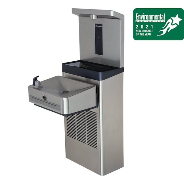 Model 1211SFH, filtered, stainless steel wall-mount ADA water cooler and bottle filler with hands-free sensor operation and bubbler deactivation feature.