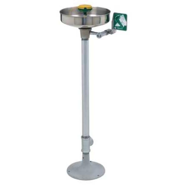 Plumbed Eyewash, Activation Push Plate, Barrier Free No, Bowl Style Covered, Color Silver, Coverage Eyes and Face, Depth 15 in, Height 38 in, Width 15 in, Environment General Purpose, Eyewash Bowl Material Stainless Steel, Hazardous Location Rating Not Rated, Includes Dust Cover, Floor Flange, Inspection Tag, Pipe and Fittings, Universal Identification Sign, Includes Drench Hose No, Includes Foot Pedal No, Inlet Pipe Gender Female, Inlet Pipe Size 1/2 in, Inlet Pipe Thread Type NPT