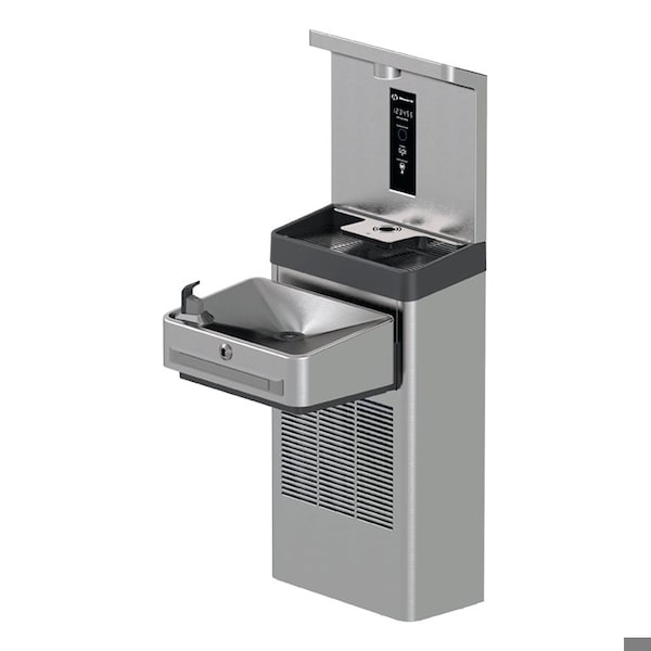 Model 1211SH, stainless steel wall-mount ADA water cooler and bottle filler with hands-free sensor operation and bubbler deactivation feature.