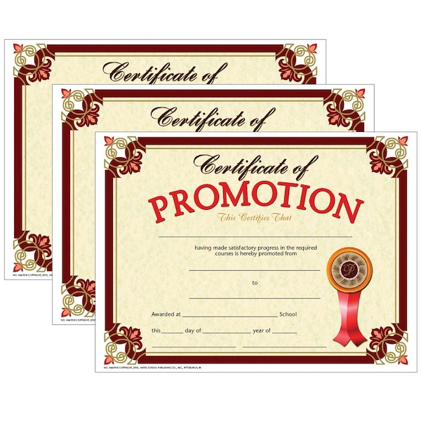 Certificate of Promotion, 8.5in x 11in, PK90, Color: Multi