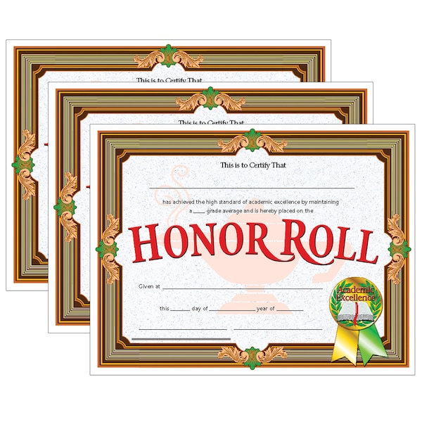Honor Roll Certificate, 30 Per Pack, PK3, Recommended Grade: K-12