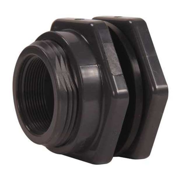 Bulkhead Tank Fitting, Fitting Material PVC, Fitting Material Finish Not Applicable, Fitting Material Grade Not Applicable, For Tank Shape Curved, Flat, Gasket Material FKM, Inside Connection Gender Female, Inside Connection Size 1 1/2 in, Inside Connection Type Threaded, Maximum Operating Pressure 150 psi, Maximum Operating Temperature 140 Degrees F, Minimum Operating Temperature 40 Degrees F, Number of Bolt Holes 0, Outside Connection Gender Female, Outside Connection Size 1 1/2 in