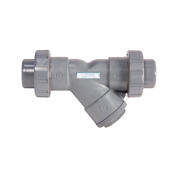 Y Strainer, Pipe Size 3/4 in, Maximum Pressure at 100 deg F 125 psi, Length 4 1/8 in, Height 3 3/4 in, Blow Off Port 3/4 in, Screen Material PVC, Perforated Screen Size Not Applicable, Mesh Size 0.0313 in, Housing Material PVC, Cv Flow Factor 6.8 gpm, Includes Screen Screen Included, Maximum Pressure 150 psi, Port 1 Connection Size 3/4 in, Port 1 Connection Type NPT, Port 2 Connection Size 3/4 in, Port 2 Connection Type NPT, Port 3 Connection Size 3/4 in, Port 3 Connection Type NPT