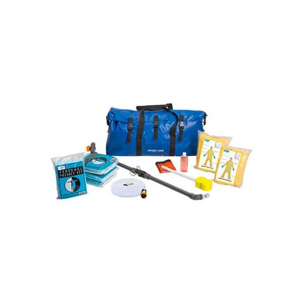 Decon in a bag is an ideal decontamination kit for responders and facilities with limited hazmat decontamination resources such as: law enforcement ems public health clinics universities and school systems urgent care centers each decon kit contains all the necessary equipment for simple, yet effective decontamination. In general, removing and bagging the victim's clothing removes over 80% of the contaminants. With decon in a bag, you have all the supplies to perform gross field decontamination in a convenient portable vinyl bag. The objective of gross decontamination is to minimize the effects of the contaminant on the patient as well as decrease the exposure risk to others. Sometimes complete decontamination in the field is not possible. A variety of factors such as adverse weather conditions, lack of privacy, water availability, the type of contaminant and responder safety may influence your ability to thoroughly decontaminate. Having decon in a bag on hand in your vehicle or at your facility will strengthen your emergency response capabilities. Available as decon in a bag (hm6000) specifications decon in a bag (hm6000) decontamination kit works to minimize the effects of the contaminant on the patient as well as decrease the exposure risk to the responder. Removing and bagging the victim's clothing removes over 80% of the contaminants and minimizes the risk of spreading the toxic agent to others after exposure to a hazardous chemical, radioactive contamination source or terrorist attack. Personal protective equipment (ppe) shields personnel from contact with hazardous materials. Although no combination of ppe guards against all hazards, the equipment selected should provide as much protection as possible to the skin, eyes, face, hands, feet and respiratory tract. Contents waterproof decontamination instructions and standard operating procedures to serve as an easy reference guide heavy-duty vinyl carry bag 1 - decon wand (hm6006) 1 - compact water supply hose (h
