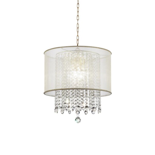 Primo Gold Finish Ceiling Lamp with Crystal Accents & White Shade