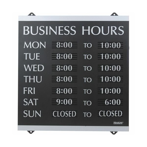 Headline Signs Sign,Business Hours,w/176 3/4'' Characters,14''x13'',SR/BK SIGN,BUSINESS HRS,14X13''