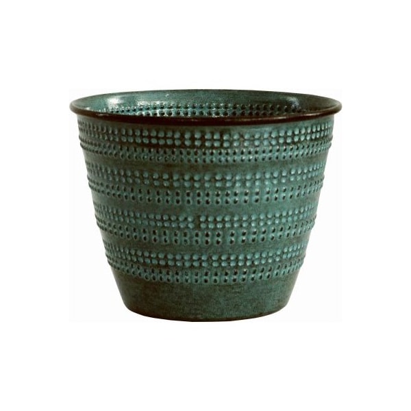 6 Ironstone Cobblestone Planter Seafoam Blue Color. Ironstone planters are made of repurposed automotive steel with a triple-coat finish that looks like glazed ceramic Includes padded feet and a rubber plug for optional drainage.