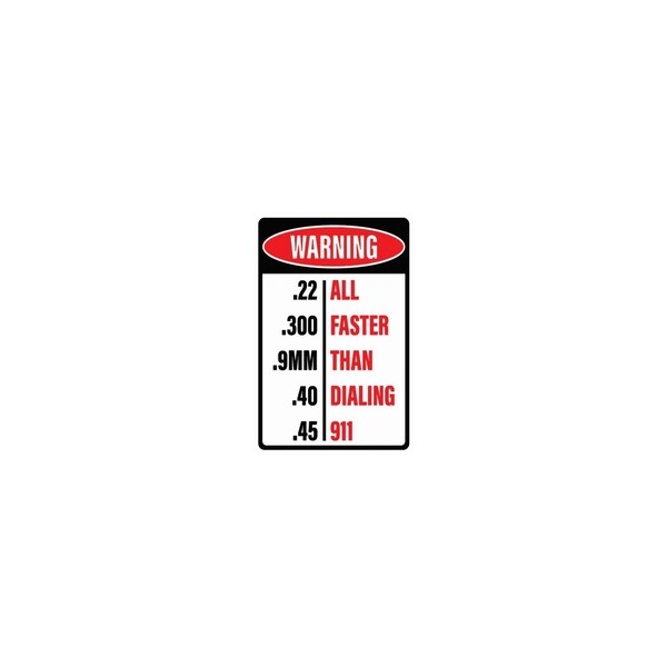 Indoor/Outdoor Metal Sign inWarning - .22 / .300 / .9MM / .40 / .45: ALL FASTER THAN DIALING 911in