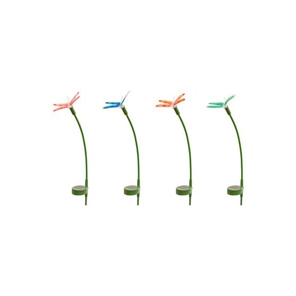 Four Seasons Courtyard, Solar Fiber Optic Dragonfly, 4 Assorted Styles, Includes A Color Changing LED, The Outside Of The Wings The Body Both Light Up At Night, Colorful Topper Adds Color During The Day