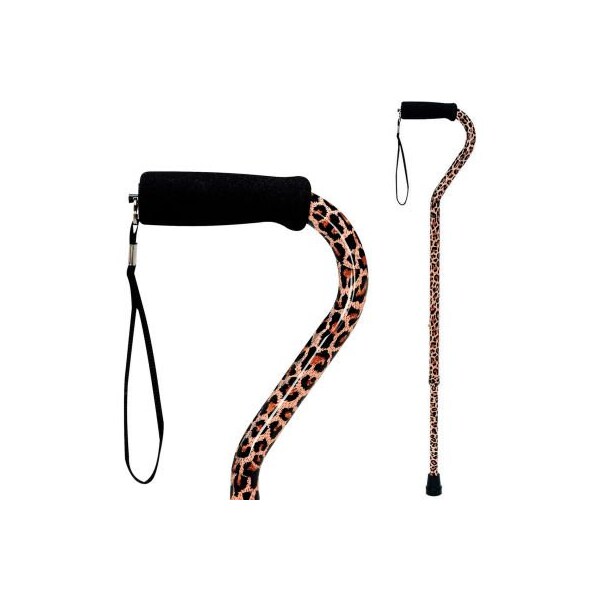 DMI Adjustable Designer Cane with Offset Handle and Strap, Leopard