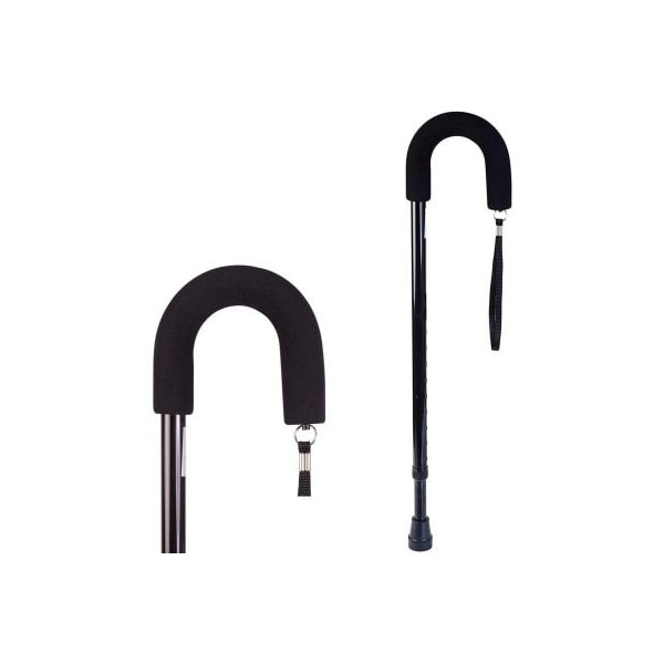 This affordable polished metal cane is crafted from anodized aluminum which makes it strong enough to support 250 pounds, yet lightweight and easy to carry. The padded foam grip handle feels comfortable in the hand; convenient strap makes it easy to hang or wrap around your wrist for extra security. The cane is adjustable from 30 to 39 inches, meaning you can set it at the height most comfortable for you. Locking ring keeps the height locked in place. The classic style and design make it an excellent choice for both men and women. Slip-resistant rubber tips give you more traction; contains latex.