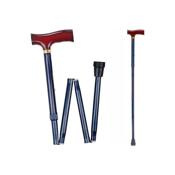 Features: why settle for medical-looking canes when you can look your best with beautiful designer style? dmi fancy folding canes have the features you want at a price you can afford. each attractive cane is crafted from anodized aluminum which makes the cane strong enough to support 250 pounds, but also lightweight and easy to carry. it folds in 4 sections and stores compactly in its 6 x 13 inch carrying case, making it a great travel companion. the cane is adjustable from 33 to 37 inches, meaning you can set it at the height most comfortable for you.