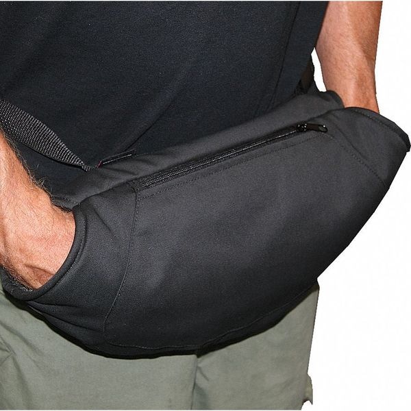 Hand Muff, Color Black, Features Angled Side Openings for Hands and a Quick Release Adjustable Belt. Zippered Pocket in the Front for Holding a Large Warmer or for Storage., Includes (1) Large Hand Warmer, Insulation Material Fleece Liner, Number of Warmers Included 1, Water-Resistant Yes