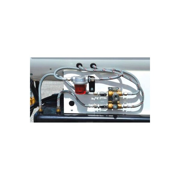 Valve and hose kit that allows access for remote fuel oil (supply and return) up to 30' from heater operation, enabling extended run times above capacity of mounted fuel tank. Optional accessory for the hvf110, hvf210, hvf310 and hvf410 heaters.