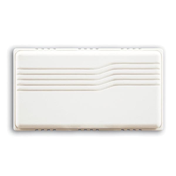 White wired Door Chime with 5 paralell lines provides a simple, clean appearance. The chime module is made of white molded plastic and has a 2-note melody; Ding and Ding Dong. It requires a pushbutton and transformer (sold separately). Works with any low voltage 16VAC/10VA transformer.