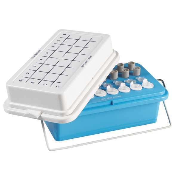 Cooler, Capacity 2 mL, Color Blue, Overall Height 4 in, Overall Length 9 5/8 in, Overall Width 4 1/8 in, Polycarbonate
