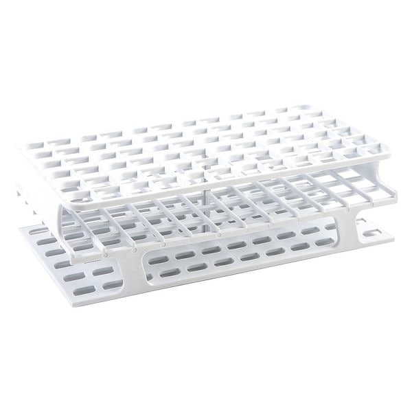 Item Tube Rack, Number of Compartments 72, Autoclavable Yes, Material Polypropylene, White, Height 8 in, Length 4 1/8 in, Width 2 5/16 in, For Use With Blood Tubes, Includes Not Applicable, Package Quantity 8
