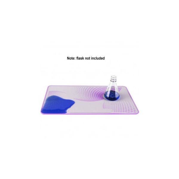 The Safety Lab Mat is an economical solution to help keep benchtops clean and safe from stains, spills and wear. Save money by eliminating the need for repeated purchases and disposal costs associated with disposable paper mats. The lab mat is made from a durable FDA approved silicone material that creates a stain resistant washable working surface. When the mat is done being used, it can be easily cleaned using any standard disinfectant by simply wiping it, or putting it in a dishwasher and it's ready for repeated use. Since the lab mat is reusable, it helps reduce waste making it a more environmentally friendly option over the alternative paper mats.The Safety Lab Mat offers a large working surface that is anti-skid which when dealing with harsh chemicals and delicate glassware helps keep items in place and prohibits the lab mat from sliding out from underneath. The mat's surface is also noise dampening, reducing sound from the vibration of common benchtop equipment. The lab mat can be used with items such as centrifuges, vortex mixers, hot plates, stirrers, pipettes and so much more. When using the mat with magnetic stirrers there is a designated area with internal metal inserts to keep stir bars from wandering around the working surface. A lip design around the outer edge of the mat helps contain spillage that may occur when in use keeping benchtops safe and clean.