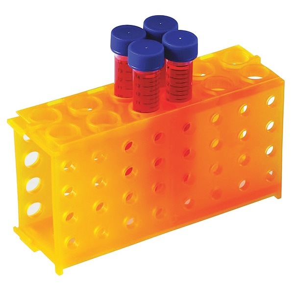 Item Tube Rack, Mounting Type Rests On Table, Number of Compartments 32, Autoclavable Yes, Material Polypropylene, Orange, Height 3 45/64 in, Length 6 29/32 in, Width 2 3/32 in, Includes Not Applicable, Lab Rack Capacity Holds 4 x 50 mL tubes (Well Dia: 30 mm) 12 x 15 mL tubes (Well Dia: 17.5 mm) 32 x 0.5 mL tubes (Well Dia: 8.2 mm), 32 x 1.5/2.0 mL tubes (Well Dia: 11.6 mm), Package Quantity 5