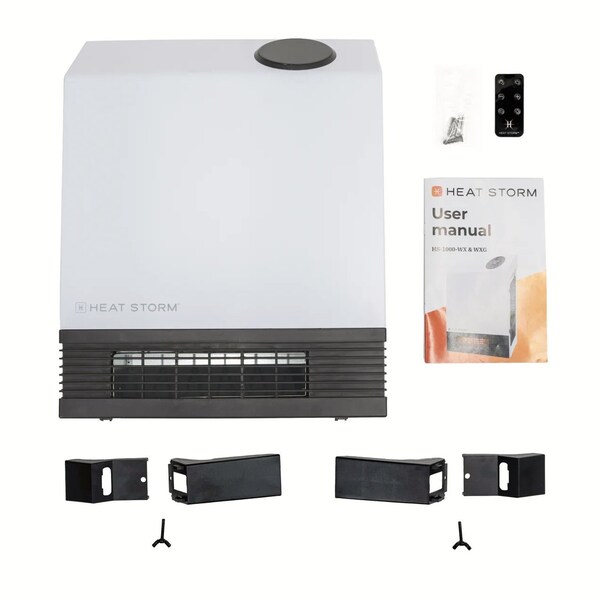 The Heat Storm 1000-Watt, infrared floor-to-wall heater is the perfect heating solution for any small bathroom, bedroom, office, or small room where floor space is limited. At 1000 watts, this heater will easily heat up your room and will not trip your circuit breaker. It is very easy to mount onto your wall or set it on the floor with the included feet. It plugs into any regular household outlet. Its digital thermostat allows you to select your desired room temperature. Child lock mode makes sure your little ones cannot adjust the settings. Screen brightness control allows you to dim the display for sensitive sleepers. This heater is safe to touch, even the grill, making it an excellent choice for anyone, even those with pets or kids. This heater has three power modes; full 1,000 Watts, half power 500 Watts and Eco mode automatically chooses between half and full power. The heater contains our Patented Heat Exchanger with HMS Technology that allows maximum heat efficiency from the infrared quartz bulbs without any heat loss from the heater.