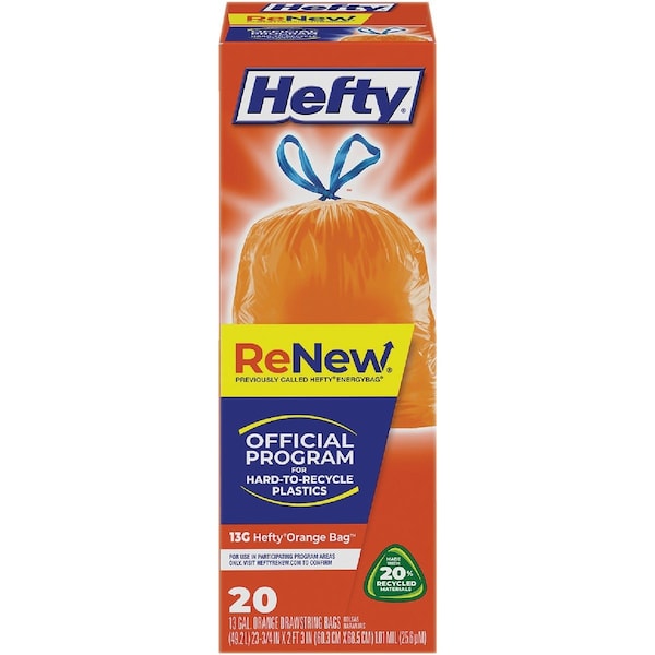 Hefty Orange Recycling bags are perfect for collecting hard-to-recycle items. Just place these bags in your regular recycle containers in cities that have set-up the program. Items to recycle: vegetable & fruit bags cereal and cake box liners foam egg cartons other plastic food bags and more.