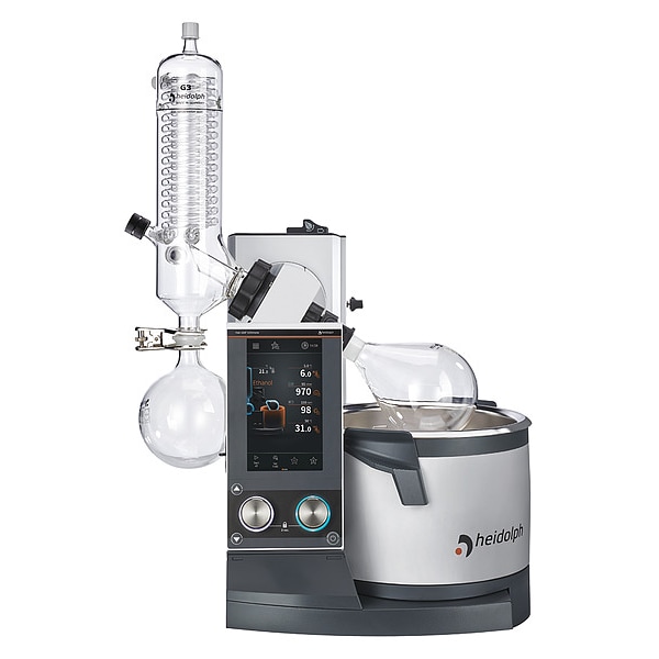 Rotary Evaporator, Height Adjustment Method Motor, Heating Capacity 1300W, Glassware Set Type G3, Standard Distillation Vertical Condenser, Temp. Setting Method Digital Display, Vapor Temp. Sensor No, Vacuum Controller Yes