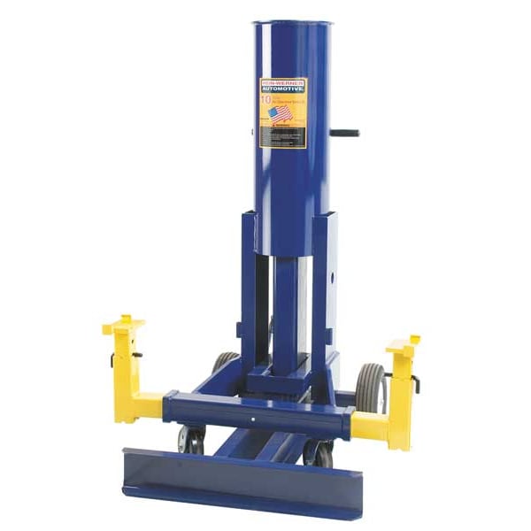 Vehicle Lift, Power Source Hydraulic, Load Capacity 10 ton, Frame Material Steel, Lifting Actuator Manual Handle, Minimum Lift Height 12 1/2 in, Maximum Lift Height 46 in, For Lifting General, Standards ASME/ANSI-PALD, Features Less Manteca with Large Cylinder, Longer Reach, Handle Material Steel, Maximum Distance Between Columns 53 in, Minimum Distance Between Columns 28 in