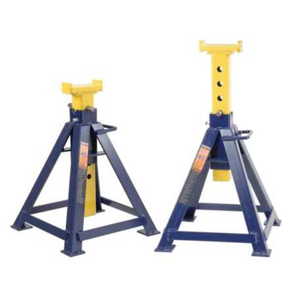 Jack Stand, Duty Rating Heavy Duty, Lifting Actuator Pin Adjustment, Load Capacity per Pair 10 ton, Minimum Height 19 1/2 in, Maximum Extended Height 31 1/2 in, Base Material Steel, Saddle Shape Rectangular, Saddle Length 5 3/4 in, Saddle Width 3 in, Saddle Diameter Not Applicable, Base Shape Square, Locking Type Pin, Standards ANSI 2009, Base Length 16 in, Base Material Finish Painted, Base Width 16 in