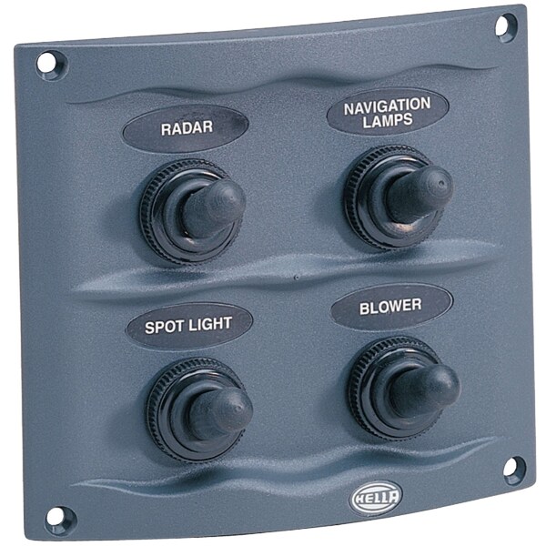 Features a high quality neoprene cover to protect the toggle switches against water spray. In-line fuses behind switch panel. Complete set of labels. Template, mounting screws and gasket included.
