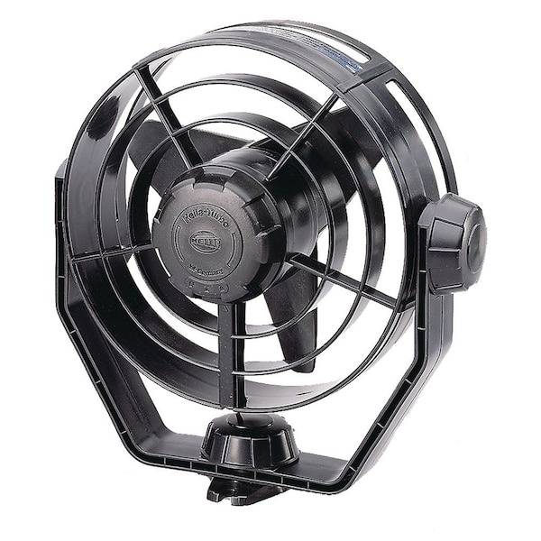 2-Speed Turbo Fan - 24V - Black. Universal fans from the versatile and well respected Turbo" range.. Can be turned and pivoted in all directions, and locked in position.. Features: 150mm diameter fan blade with guard. High air moving capacity with low power consumption. Two speed switch in front of the blade guard. Side, upright or pendant mounting. Quality German motor provides very quiet operation Specifications: Material Description: Impact resistant plastic. Switch: Integrated 2 stage rotary. Output / Speed 1: 70L / sec.. Output / Speed 2: 95L / sec.. Power Consumption: 6.5W. Installation: Pre-wired with 140mm of cable.