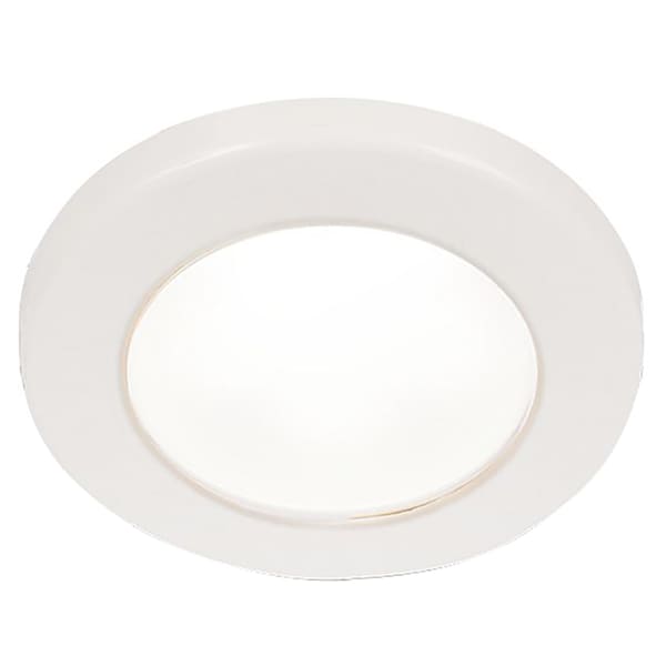 EuroLED 75 3" Round Screw Mount Down Light - White LED - White Plastic Rim - 12V. Stylish, reliable and energy efficient, these lamps will provide excellent illumination to enhance interior and exterior spaces.. The EuroLED 75 uses a highly efficient optical system that produces a very wide and even illumination that is specifically designed to reduce individual light source glare, which can lead to discomfort and eye strain.. This precision optic, coupled with the latest LED technology delivers exceptional color rendering, reproducing colors in their natural richness. The EuroLED 75 replicates the pleasing appearance of a traditional round lamp but contains all the advantages of a high efficacy, durable solid state light - giving you the best of both worlds.. EuroLED 75 is available in warm or neutral white which will beautifully enhance the materials chosen for your vessel. Screw or spring mount options, pre-wired and sized for a standard cut out make new or refit installation a breeze.. Hella marine EuroLED lamps are completely sealed and manufactured using the highest grade materials that will not corrode, fade or embrittle in the harsh marine environment. Innovative, ceramic based thermally conductive materials dissipate heat generated by the LED' s, thereby extending the life of the luminaire, whilst being completely corrosion free. This means you can use the same light fittings for both the interior and exterior to create a clean and consistent lighting plan.. Like all Hella marine LED lamps the EuroLED 75 Specifications:. Rim material: UV resistant plastic or 316 stainless steel options. Color Temperature: 5000K (White), 2700K (Warm White). Dimming: Via PWM or Voltage Resistive dimmer. Cable: Pre-wired with 150mm tinned marine cable. Operating Voltage: 12V or 24V DC options. Power Consumption: <3W ( <0.19A @ 12V DC / <0.1A @ 24V DC). Degree of Protection: IP6K7 & IP6K9K (Completely sealed). Installation: Screw or Spring Clip options. Approvals: CE, RCM. Manufactured In: New Zealand.