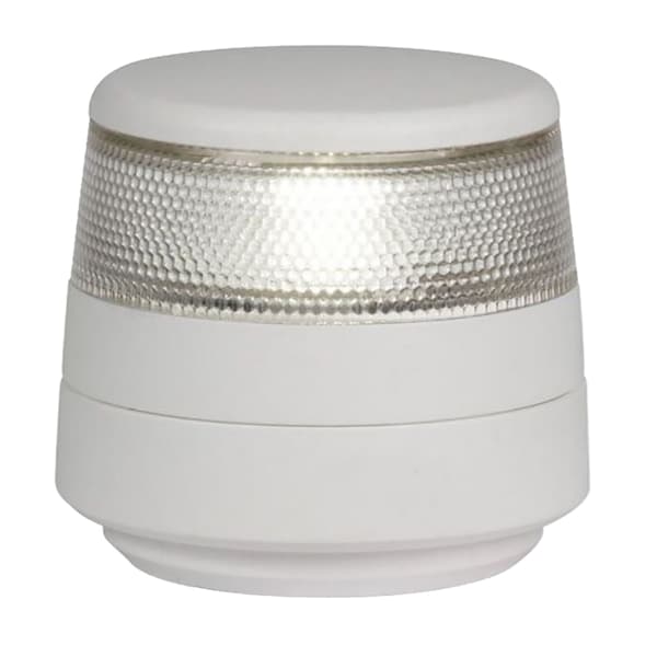 NaviLED 360 Compact All Round White Navigation Lamp - 2nm - Fixed Mount - White Base. With a compact mounting footprint Hella marine NaviLED 360 Compact lamps feature single LED efficiency, advanced Multivolt electronics and precision optics for reliable and highly visible all round lighting.. With less than 1W of consumption, NaviLED 360 Compact lamps draw a fraction of the energy required to run a conventional 2 nautical mile incandescent lamp.. No bulbs, No maintenance. Ultra long service life , Hella marine LED technology has no filaments to break making NaviLED lamps extremely shock and vibration proof for reliability and safety in demanding conditions.. Multivolt 9-33V DC , Advanced electronics ensure reliable illumination and lamp protection even under severe voltage fluctuations and low battery voltages. The compact Multivolt drive circuitry provides reverse polarity, spike and over-voltage protection for long life and reliable operation.. Safe and highly visible , Hella marine optics deliver 100% correct light output and enhance visibility compared to bulb navigation lamps.. Fully sealed for life. IP 67 Certified , Each NaviLED 360 Compact lamp is a completely sealed unit, highly UV and corrosion resistant. High impact housings ensure durability from waves and impact. NaviLED 360 Compact anchor lamps have undergone extensive tested to destruction' programs to help lift product reliability to a new standard.. Specifications: Material Description: UV and impact resistant plastic housing and heavy duty Grilamid lens. Minimum Visible Distance: 2 Nautical Miles (Yacht and Powerboats). Cable: Pre-wired with 500mm of twin core cable. Operating VoltageMultivolt 9-33V DC. Power Consumption: <1W. Degree of Protection: IP 67 - Completely Sealed. Weight: 90g including cable. Approvals: IMO Col Reg 72, Wheelmark, RCD, USCG, ABYC A-16, Maritime NZ.