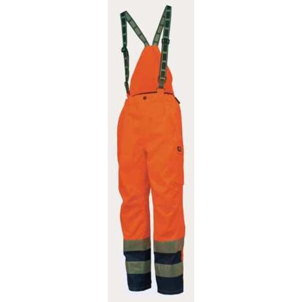 Rain Bib Overall, Material Polyester, Gender Men's, Inseam 33 In., High-Visibility Yes, Fabric Weight 37.6 oz, Thickness 0.2mm, Includes Detachable Suspenders, Boot Zips, Hook-and-Loop Adjustment at Hem, Reflective Tape