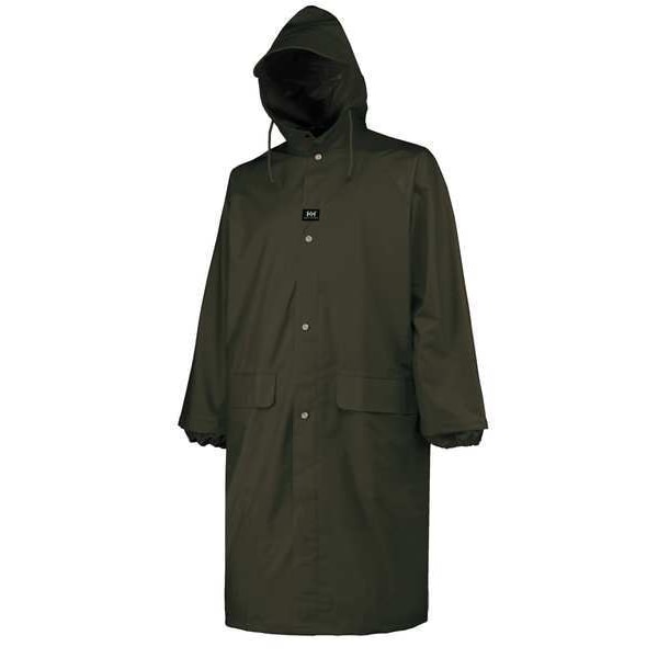 Rain Coat with Attached Hood, Garment Type Rain Coat, Style Rain Coat, Size S, Number of Inside Pockets 0, Number of Outside Pockets 2, Color Green, Front Closure Type Zipper with Storm Flap, Gender Men's, Material PVC, High-Visibility No, Back Stripe Pattern None, Includes Hood Yes, Hood Style Attached, Length Type Calf, Includes Removable Liner No, Includes Lining Yes, Maximum Chest Size 36 in, Lining Material Polyester, Features Wind Resistant, Cuff Style Open, Thickness 0.35 mm
