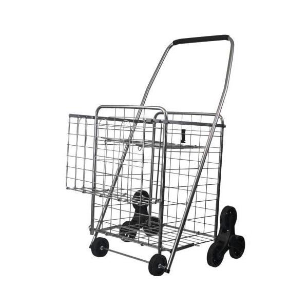 Stair Climb W/ 2Nd BasketHigh Quality Product3-Wheel Stair Climbing Technology allows for smooth rolling up and down stairs, curbs and steps2nd basket for added storage; Collapsible shelf Shelf Dimensions: 12.75 in. x 11.25 in.Comfort foam grip handle; Quick and easy assembly - No tools required!