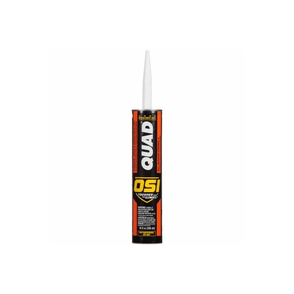10 OZ, White, Quad Sealant, Recommended For Window, Door Siding Applications, Stays Flexible In Hot Cold Weather, Superior Adhesion Characteristics, Easy Extrusion In Cold Weather, Clear Is Crystal Clear, Paintable When Cured, Use On Vinyl, Aluminum, Steel, Wood, Fiberglass, Fiber Cement Board, Masonry Concrete, VOC Complaint