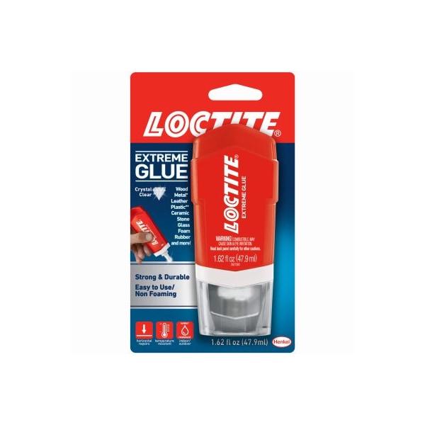 Loctite, 50 gram, Extreme Glue Liquid A true allpurpose glue that is extremely strong and easy to use nonfoaming The glue delivers the power of two technologies to create durability versatility It is the ideal formula for repairing, crafting, and building projects This technology was developed with Loctite Industrial expertise Extreme Glue dries crystal clear, does not wrinkle paper and sets with no clamping Extreme Glue is elastic, shock resistant, nonshrinking, fills gaps, water resistant and can be used indoors and outdoors