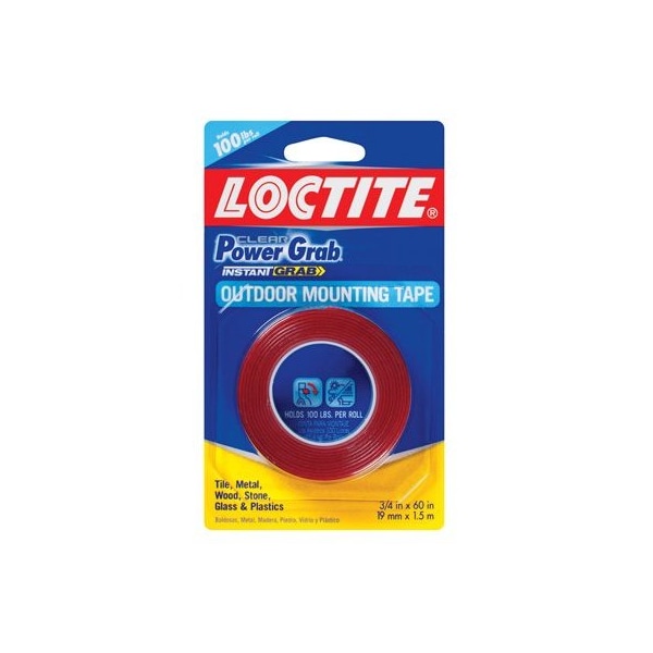 Loctite, Power Grab, 60 x 75, Mounting Tape, A Permanent, Super Strong, Double Sided Tape For Fast, Clean Durable Mounting Applications, Indoors Outdoors, An Entire Roll Can Mount A 110 LB Object, Waterproof, Has High Resistance To UV Light, Plasticizers Aging, Ideal For Mounting Skirting Boards, Pictures, Mailboxes, House Numbers, Hooks Automobile Trim Attachments, Except For Rearview Mirrors, Recommended For Applications On Tiles, Metal, Wood, Stone, Glass Plastics Including PVC, Polyethylene, Polypropylene Nylon