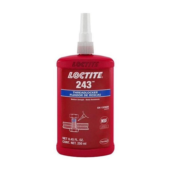 Anaerobic Threadlocker; Primerless; Bottle; 250 Ml; Liquid; Threaded Fastener Between 1/4 to 3/4 Inch Dia; Blue