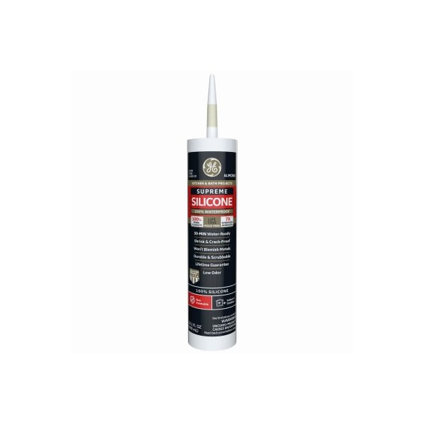 GE supreme silicone kitchen and bath sealant, almond, 101oz Supreme silicone kitchen and bath sealantisapremium, 100siliconeand100 waterproofsealant ideal for areas constantly exposed to moisture This 30minute waterready formula has 100 more flexibility than class 25 sealants and has 7x stronger adhesion than silicone 1 sealant It offers 50 joint movement capability for a shrink and crackproof seal This sealant also resists mold and mildew growth with lifetime moldfree product protection